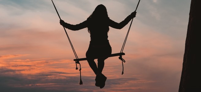 I can go the highest on this swing, the one behind the silver birch, out of sight.